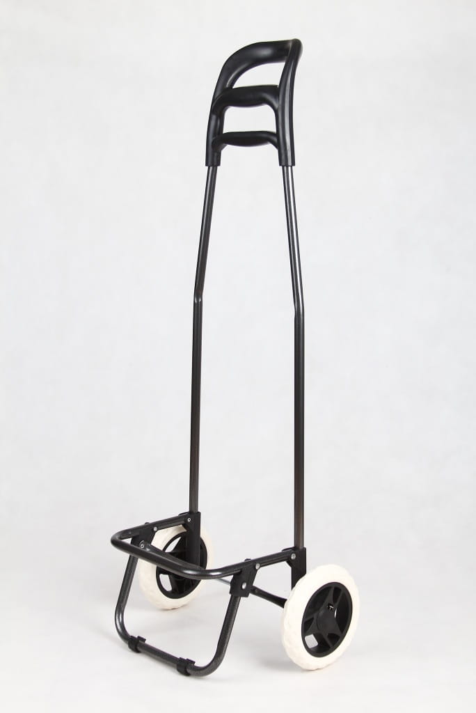 Wózek zakupowy (stelaż bez torby) z potrójnymi kołami na schody oraz dodatkowo z kołami pojedynczymi o średnicy 17 cm.